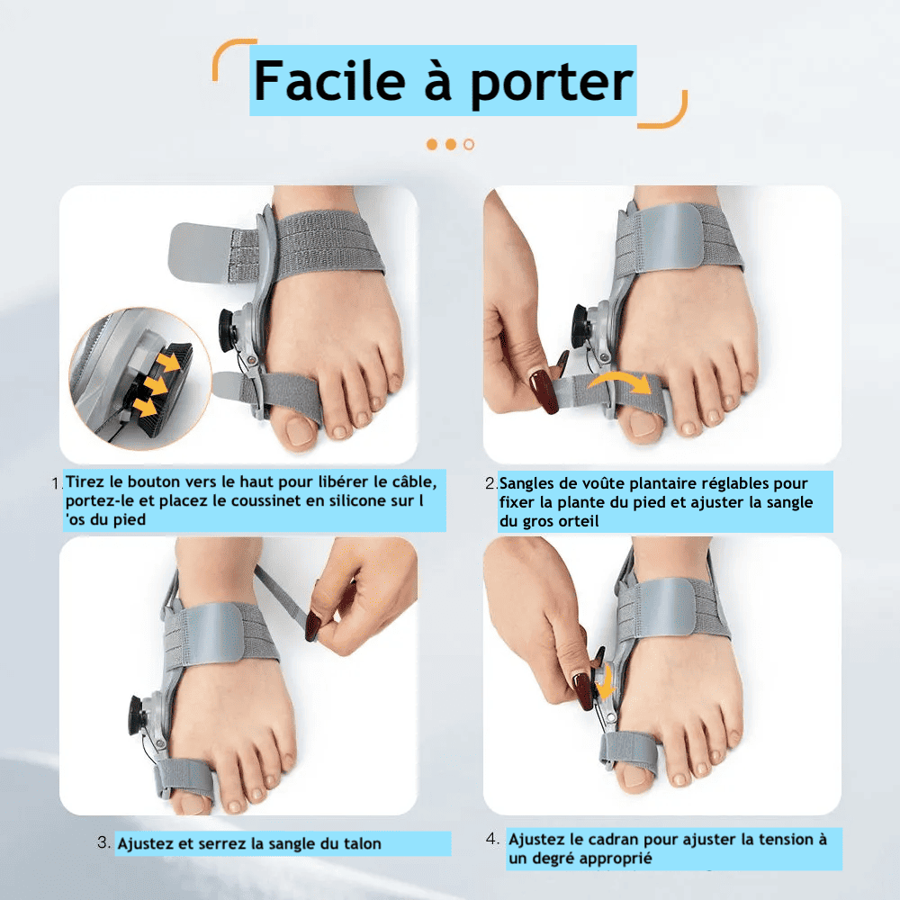 Conçue avec l’aide de professionnels de santé, cette solution est recommandée pour toutes les personnes souffrant d’hallux valgus, quel que soit leur âge.
